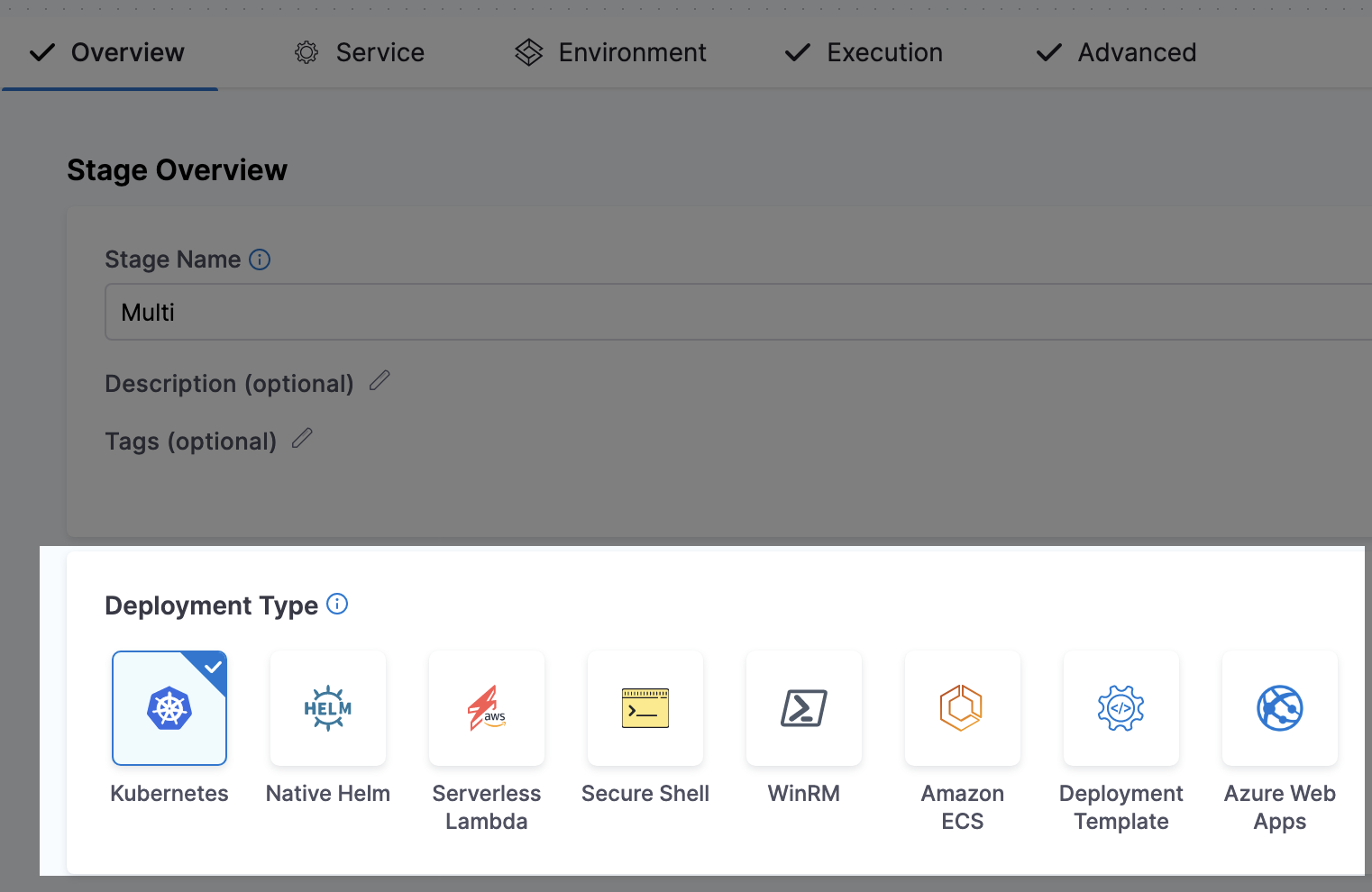 In Environment, enable Deploy to multiple Environments or Infrastructures.